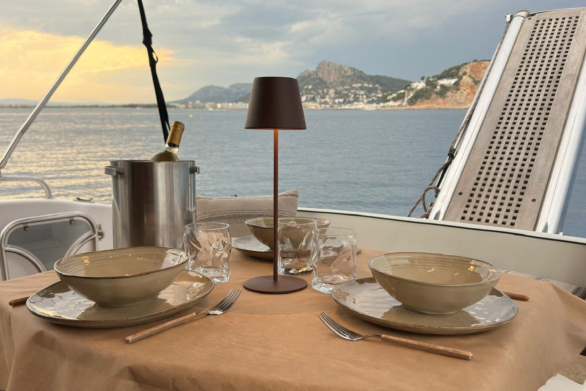 Desayuno o cena romántica a bordo del yate Joca Disfruta de un momento único en alta mar, rodeado de tranquilidad y vistas inolvidables, para crear recuerdos especiales.