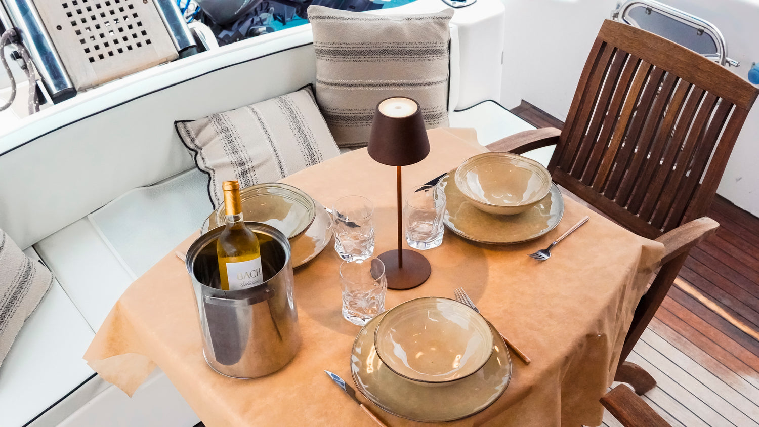 Desayuno o cena romántica a bordo del yate Joca Disfruta de un momento único en alta mar, rodeado de tranquilidad y vistas inolvidables, para crear recuerdos especiales.